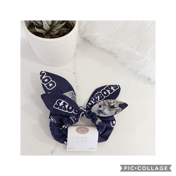 Football Fan TEAM BOW HAIR SCRUNCHIES